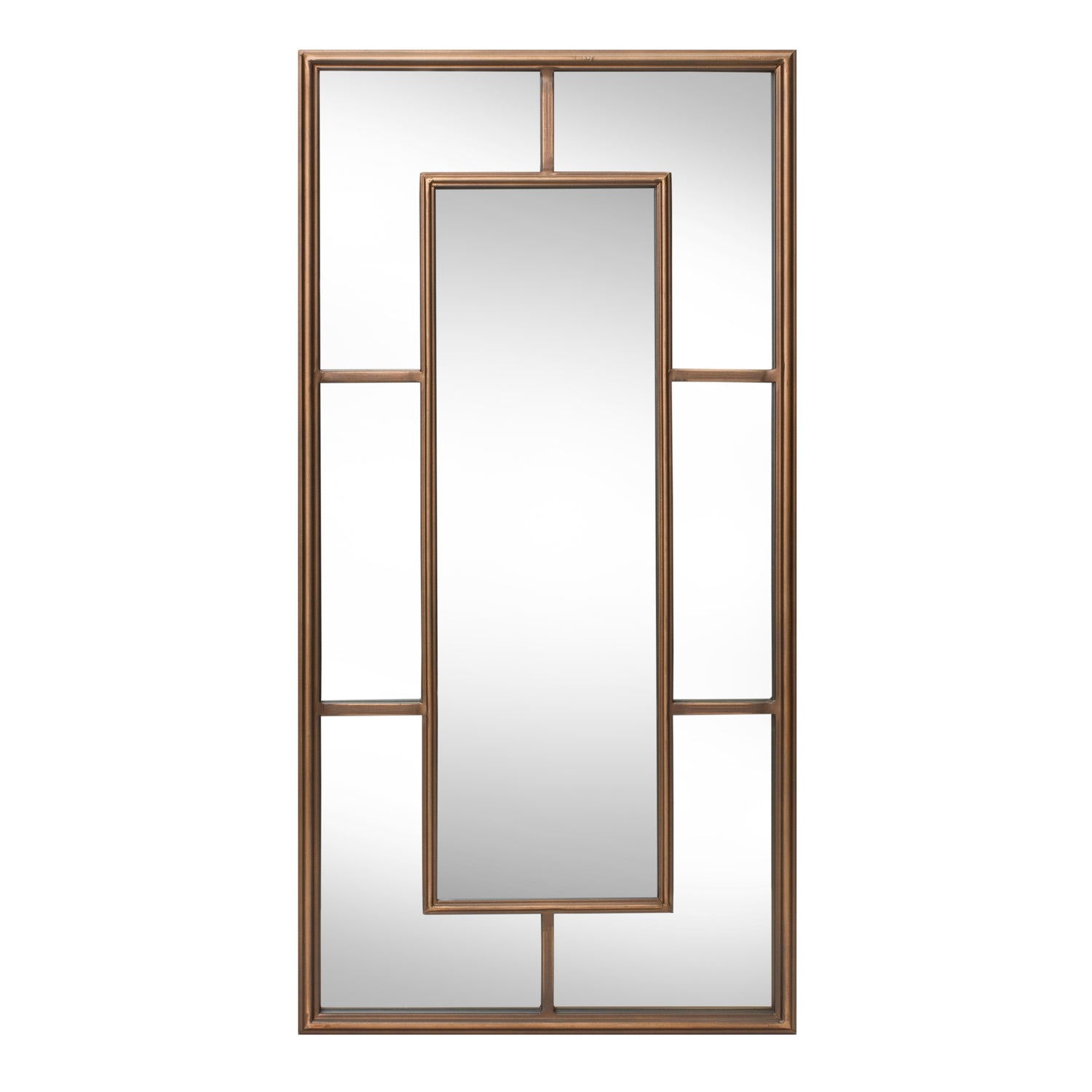 Beautify your living space with this beautiful Iron Paned Mirror. Featuring a pane design with chic gold frame, this elegant piece would make a great addition to any style of home decor. The quality glass mirror and iron metal frame is sure to endure for years to come. Display the piece on your wall to add interest, or lean it against the wall alongside other decor. Measures 15.75 x 1 x 31.5. Primary Materials: Iron Metal, Mirror. Reccommended for indoor use only. Shop Home Décor & More from Diana Dreger Designs.