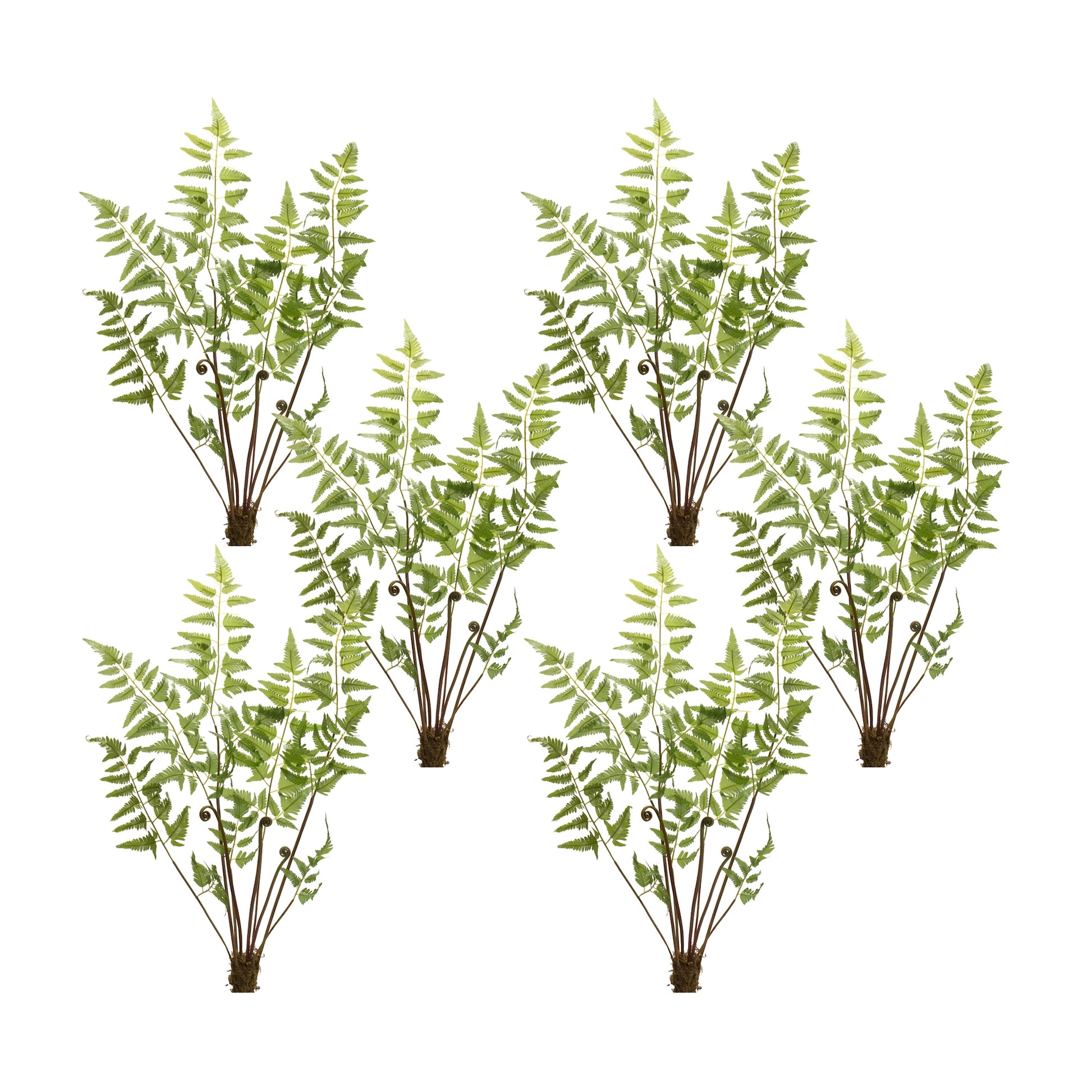 Add a pop of natural color to your home with this beautiful Fern Bundle. Featuring Set of 6 pieces, this set's varigated Fern foliage is sure to fit in with any style of home decor. The quality polyester leaves are sure to last for seasons to come. Display the set in a vase or decorative container to complete the look. Measures 13.25 x 3 x 37 each. Primary Materials: Polyester, Iron Wire. Reccommended for indoor or outdoor covered use only. Shop Home Décor & More from Diana Dreger Designs.