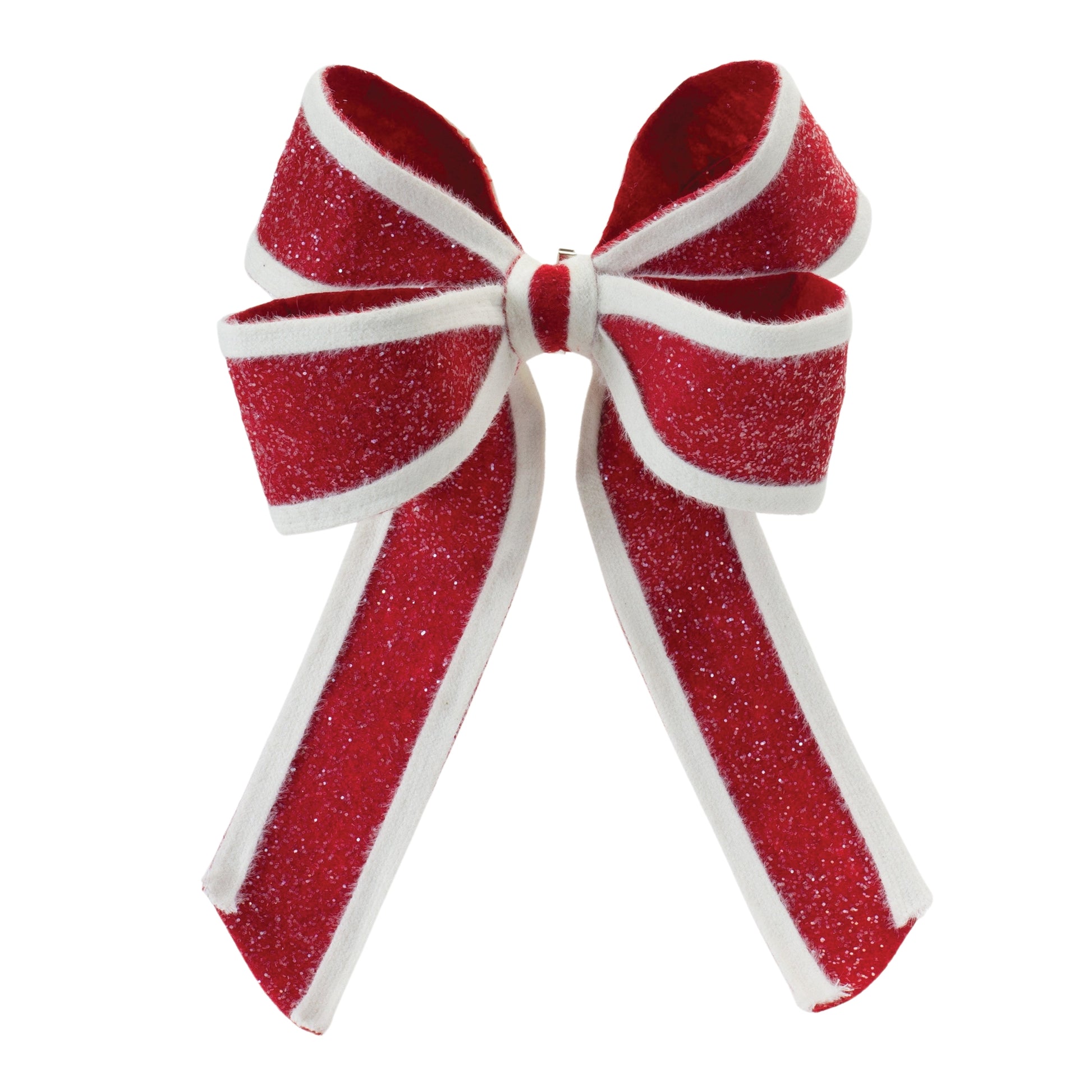 Embellish your home decor items, gift wrap, craft projects, and more with this beautiful Wired Holiday Bow. Measuring 14.5"H, the bow features a glittered design. The classic tones paired with quality polyester wire composition is the perfect combintion to create a stunning holiday display. Use this ribbon to make hand-tied bows to adorn onto your Christmas presents or holiday wreaths, or embellish your Christmas tree with a trailing ribbon garland.