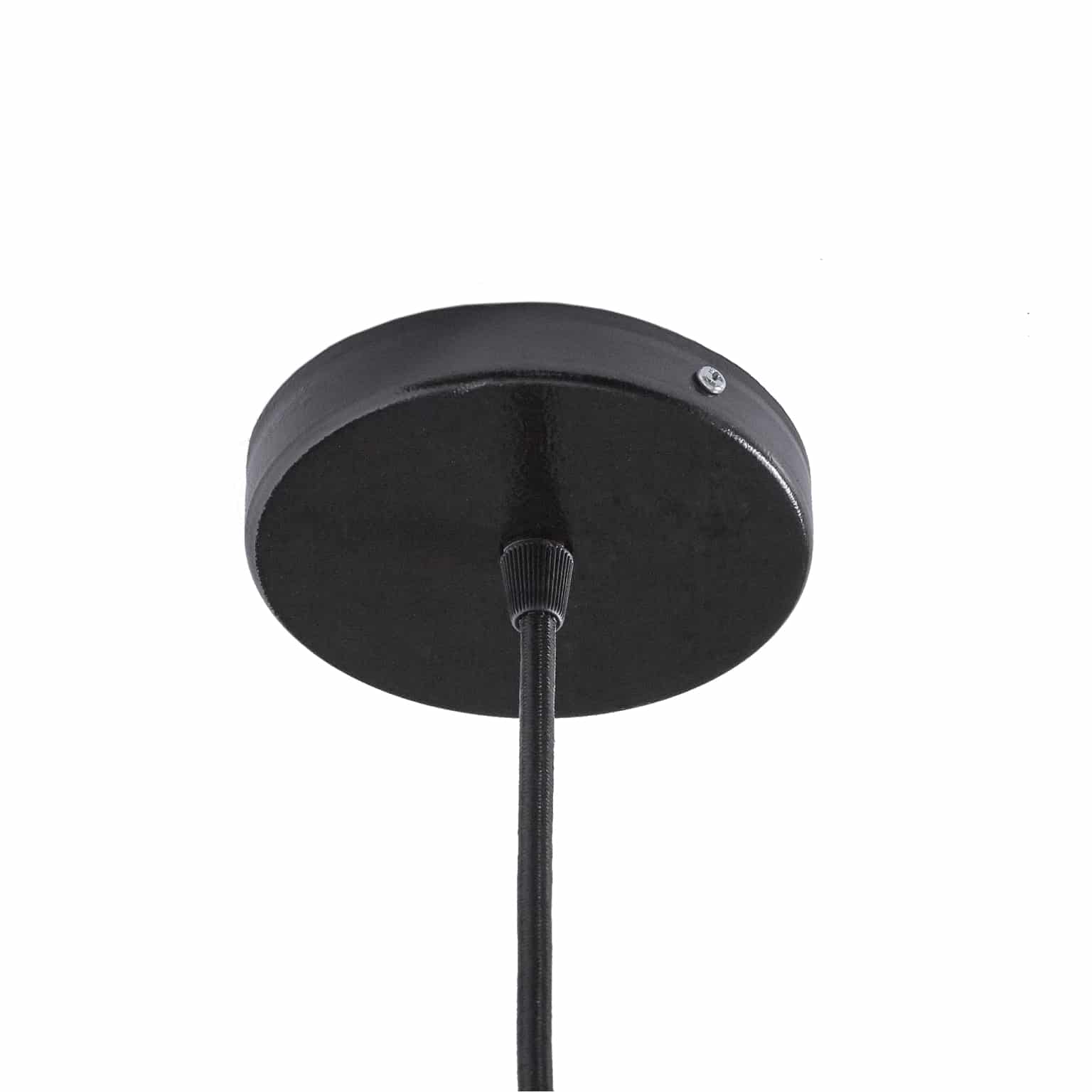 Features fossilized cocoa leaves that are hand placed on a standard UL lamp backing and then laminated using a non-toxic adhesive, creating each of the six sides of the lamp. The panels are handstitched onto a powder coated, wrought iron frame to form a dome shape. The shade includes a layered series of hanging wrought iron tentacles accented with glass beads completing the jellyfish profile. The lamp includes approximately seven feet of adjustable cord, ceiling plate and all hardware required to install it in a standard ceiling box.