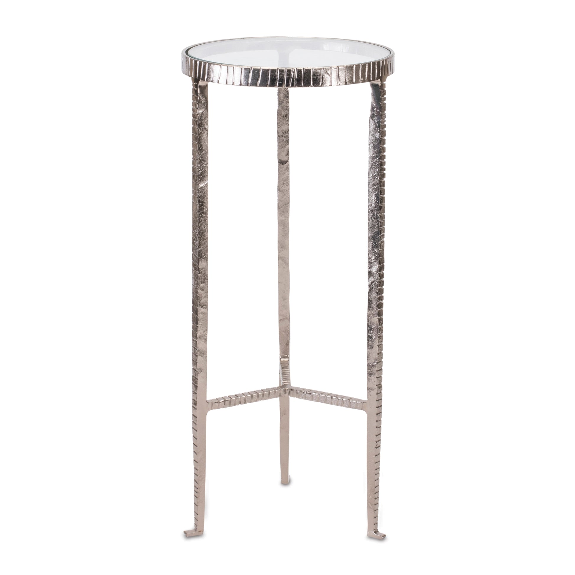Furnish your home with this beautiful Iron Accent Table. This piece would fit in great with your modern, contemporary, or luxury/glam style of decor. The glass table top paired with the chic silver finish on the frame is the perfect combination to create a stunning display. The quality iron metal composition is sure to last for seasons to come.