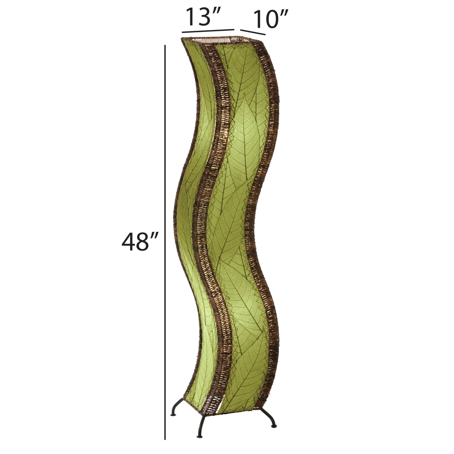 The Wave lamp puts design into motion with its relaxed and oscillating design. Your eye will naturally follow the vertically placed leaves as they are guided along the curvy shape. The corners are framed with abaca rope giving the lamp added texture.